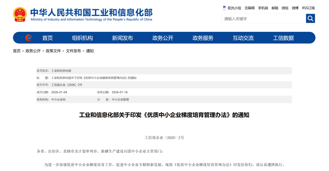 防水企业请注意!专精特新『小巨人』企业最新认定标准公布!工信部修订印发《优质中小企业梯度培育管理办法》(附解读)发表时间:2026-02-01 06:40 ![]() 《办法》扩大了培育基础,首次将科技型中小企业纳入梯度培育范围,未来的优质中小企业梯度将包含科技和创新型中小企业、专精特新中小企业和专精特新“小巨人”企业;并在动态管理、培育服务等方面作出更进一步要求,确保培育企业质量。同时,对专精特新中小企业认定标准、专精特新“小巨人”企业认定标准进行完善。 《办法》旨在更好发挥优质中小企业示范带动和固基强链作用,并结合了“十四五”以来培育工作中形成的质量评价、“双随机审核”、动态管理、精准服务等经验做法,推动培育工作更加科学、规范和完善,持续擦亮专精特新“金字招牌”。 为便于理解《办法》,做好贯彻实施工作,工业和信息化部中小企业局负责同志对《办法》进行了解读。 一、修订《办法》的背景是什么? 党中央、国务院高度重视优质中小企业梯度培育工作。习近平总书记强调,要“激发涌现更多专精特新中小企业”。党的二十大及二十届历次全会提出,“构建促进专精特新中小企业发展壮大机制”“促进中小企业专精特新发展”。工业和信息化部会同各部门、各地方深入贯彻落实党中央、国务院决策部署,坚持“两个毫不动摇”,坚持服务和管理并重、发展和帮扶并举,加快构建优质中小企业梯度培育体系。“十四五”以来,全国累计培育专精特新“小巨人”企业1.76万家,带动培育专精特新中小企业超14万家,科技和创新型中小企业超60万家,优质中小企业梯度培育体系基本形成。 为适应新形势新要求,进一步健全优质中小企业梯度培育体系,引导企业持续提升发展质量,指导地方健全优质企业主动发现机制、强化培育服务和动态管理,在充分征求地方和企业意见建议和总结“十四五”企业培育工作经验的基础上,我部组织修订形成《办法》,推动培育工作标准提升、流程优化、管理规范、服务协同,持续擦亮专精特新“金字招牌”。 二、《办法》主要修订了哪些内容? 主要有以下四个方面: (一)健全培育体系 一是扩大培育范围。将科技型中小企业纳入优质中小企业梯度培育范围,与创新型中小企业共同作为优质中小企业的基础力量,统称为科技和创新型中小企业。明确专精特新中小企业由科技和创新型中小企业自愿申报,专精特新“小巨人”企业由专精特新中小企业自愿申报。 二是引入主动发现机制。充分挖掘产业链供应链、股权投资、知识产权、科技奖项、人才引育等数据,常态化发现潜在优质中小企业,定向邀请其参加认定,但认定标准不降低。 三是切实减轻企业负担。与有关部门加强数据互通共享,减少企业数据填报负担。明确对于复核企业,只需按自身所获最高一级认定参加复核。简化发生简单更名、跨区域迁移等情形的变更程序,企业仅需登录平台提交申请即可。 (二)优化认定标准 一是完善部分指标。如:考虑外向型企业的特点,将细分领域国际市场占有率也纳入认定标准。要求Ι类知识产权应为企业自主申请,且排名前三。同时,取消专精特新中小企业认定标准中各省自主设定的15分特色化指标,实现全国“一把尺”。 二是适当提高门槛要求。根据企业发展整体情况,适当提高营业收入、研发投入、知识产权等要求。以专精特新“小巨人”企业为例,将营业收入提升至5000万元以上,研发费用提升至近两年合计不低于1200万元,Ι类知识产权提升至4项以上。 三是强化质量要求。在标准中引入中小企业专精特新发展质量评价得分(以下简称质量评价得分),引导地方和企业更加重视提升发展质量。 (三)加强过程管理 一是规范地方审核流程。推广实施“双随机”审核机制(随机抽取专家组成多个专家组、即时随机派发审核任务),规定专家组应包含一定数量的产业专家和财务专家。 二是强化质量管理。对于质量评价得分较低的地区,采取限制专精特新“小巨人”企业推荐名额、控制数量增长等措施。对评价得分较低的企业,加强重点监测和针对性帮扶。 三是防范不良中介影响。要求各级中小企业主管部门及其相关支撑单位为企业提供申报指导,不得向申报企业收取费用,不得将审核认定相关工作委托第三方中介机构承担,应联合相关部门严格防范不良中介机构。 四是提高包容性。进一步明确直接取消认定的具体情形,并对取消认定后完成信用修复并移出严重失信主体名单的企业,以及按照行业管理规定要求完成整改并获得相关部门认可的企业,免除“三年内不得再次申报”的限制。 (四)加强培育服务 引导各级中小企业主管部门统筹用好财税、金融、科技、产业、人才等支持政策,结合不同企业定位和特质,分类分层开展培育服务,推动惠企政策“免申即享、直达快享”。 三、修订后的认定标准主要包括哪些方面? 修订后的专精特新中小企业和专精特新“小巨人”企业认定标准包括门槛指标和质量评价得分指标: 门槛指标方面,主要包括从事特定细分市场年限、营业收入、研发投入、知识产权等核心指标,对专精特新“小巨人”企业还增加了固基强链、提高产业链韧性和安全水平等方面发挥作用的考察。通过设置这些门槛指标,确保认定企业不存在明显短板和不足。 质量评价得分方面,将